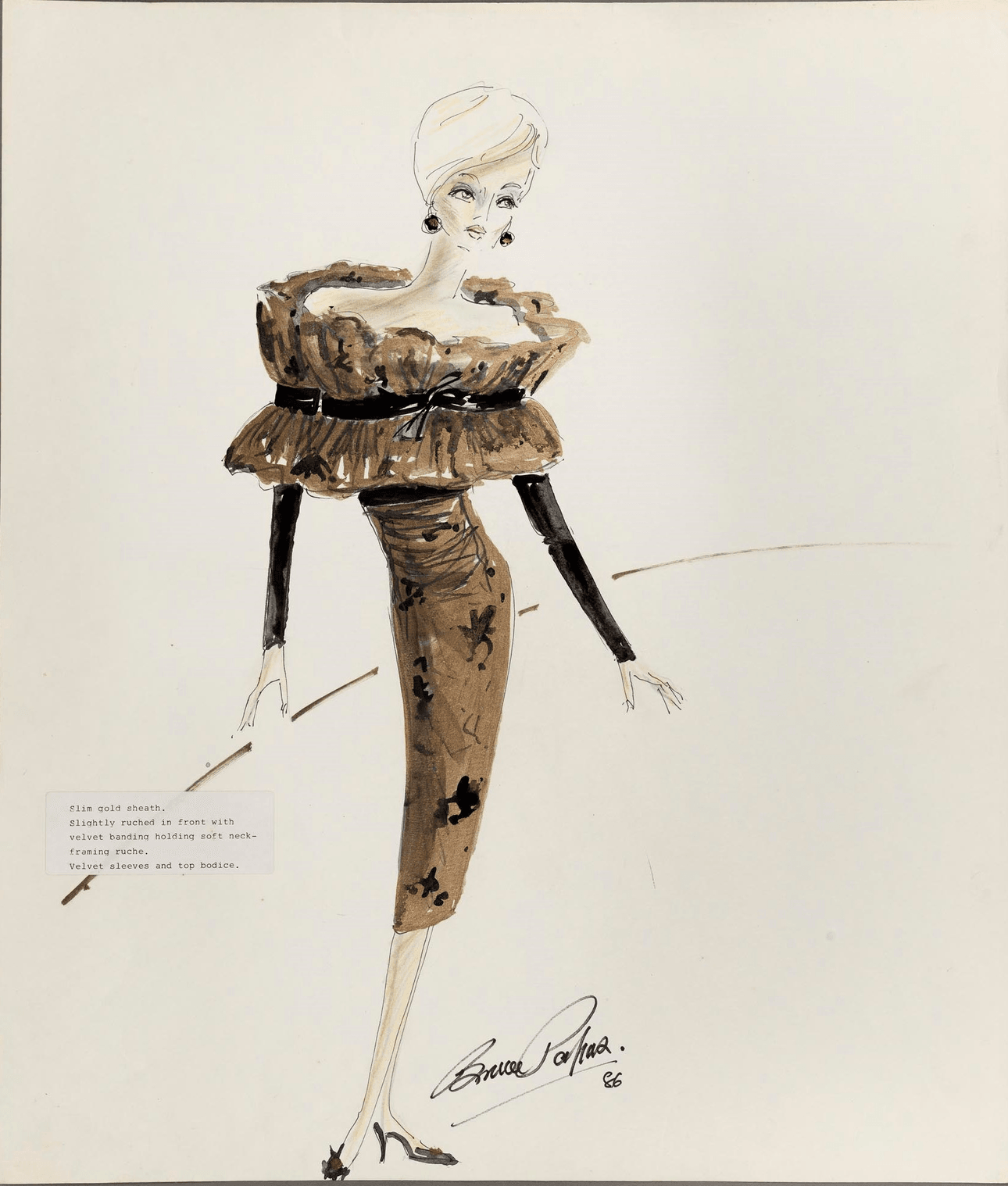 In the exhibition A Certain Style: Bruce Papas on at Smith + Caughey’s on Queen St from 19th March, the New Zealand Fashion Museum presents an overview of the work of a single designer. It is a historical story that starts in the 1940s when Bruce Papas began his training and covers the decades until 1990 when he made his last couture gowns. Through a display of exquisitely detailed and carefully crafted garments and fashion sketches the exhibition paints a vivid picture of the changes in fashion and society, and how people participated in both. While this exhibition is an echo of its time, it still resonates today.