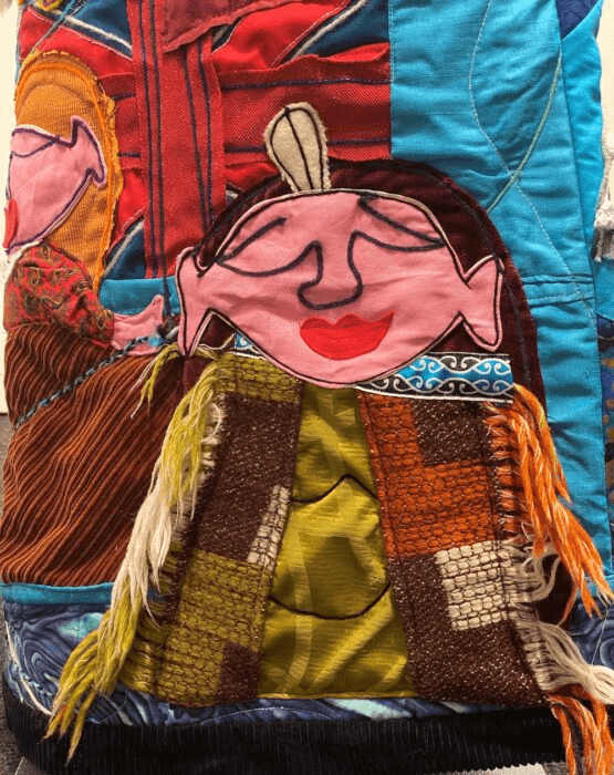 Seeing this quilt laid out in the midst of the most terrifying time in recent world history is a queasy experience. It’s difficult to respond to the questions it poses without a gut-wrenching sense of familiarity. We’re no longer in the innocent position of imagining what we would do if we saw a hostile force coming for our vulnerable – now, we all know what we did, or didn’t. Rīpeka’s limpid gaze and Kahe’s determined frown want to know: did you hesitate? When you were needed, did you show up? What did you teach your children about courage?