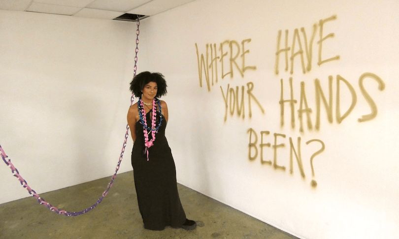 Wickliffe took this notion further in her introductory speech for the opening exhibition (which she curated). Pointing to one work, she told the audience it was an unfinished work dedicated to her grandfather who passed away last year. She then proceeded to “complete” the work by painting thick strokes of black paint over the face of the piece, erasing the illustrations and thereby evocatively expressing her loss, while the audience watched on in shocked silence.