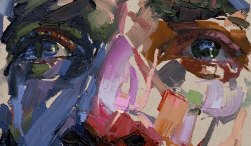 The dark eyes in a large oil on raw linen painting, ‘Aerial Roots’, are brimming with tears. The young man looks either triumphant, or destroyed. Which is it? This is what makes painter Jack Trolove’s portraits so compelling. There is the visual immediacy of the faces, often in close-up, simultaneously slipping back into abstract lines of thick, bold paint.