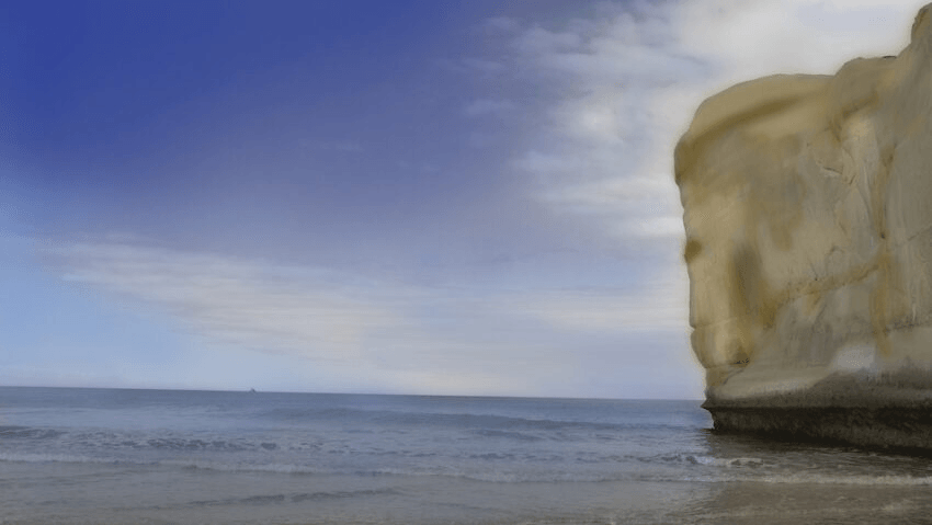 Finally, the fifth commission, ‘Tunnel Beach’, is from Bridget Reweti, shot on her lockdown walks to this nearby popular Ōtepoti location. It’s a short, surreal slide show of slowed moving images of sea and headlands recoloured from black and white, recalling the 19th century colonial photographic technique.