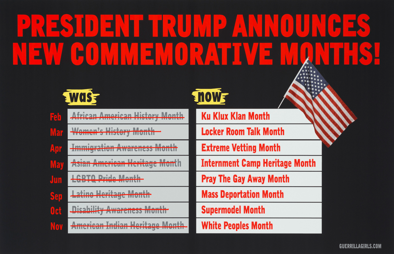 Guerrilla Girls did a poster for Trump’s New Commemorative Holidays.