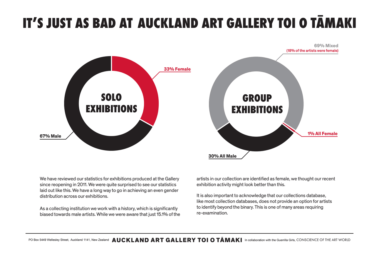In the Auckland exhibition, the gallery’s own statistics are displayed. When museums show your portfolio, do you put require them to display their own stats around representation?