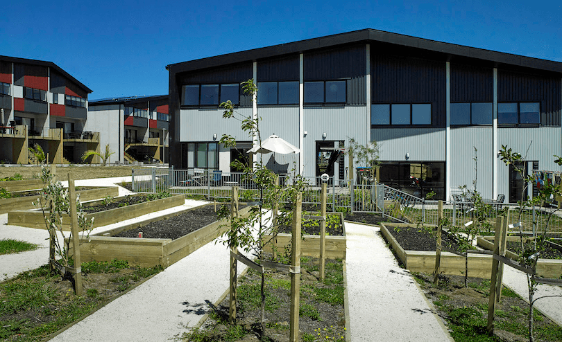 Celebrated in architectural design circles, the two clusters of houses sit on either side of Kupe Street. Terraced town houses border a driveway and garden with māra kai beds, providing children with a central yard to play in where an eye can be kept on their activities from most kitchens (what child doesn’t want to play with their friends and cousins in the backyard every day?).