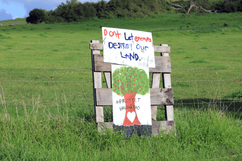 The protest against the Ihumātao housing development started five years ago with Pania Newton and her cousins around a kitchen table. They are refusing to relinquish land that was ‘confiscated’ in 1863 after mana whenua refused to pledge allegiance to the Crown in the war against Waikato iwi. As she guides the guests around the Ihumātao lands, Newton explains that it’s not just a fight for the land itself, but a fight for justice, history, recognition and feminism.