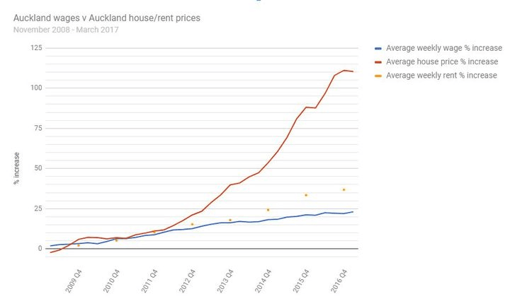 But the increasing unaffordability of Auckland’s market is at its starkest when you set the rise in house prices against wage increases in the region since 2008.