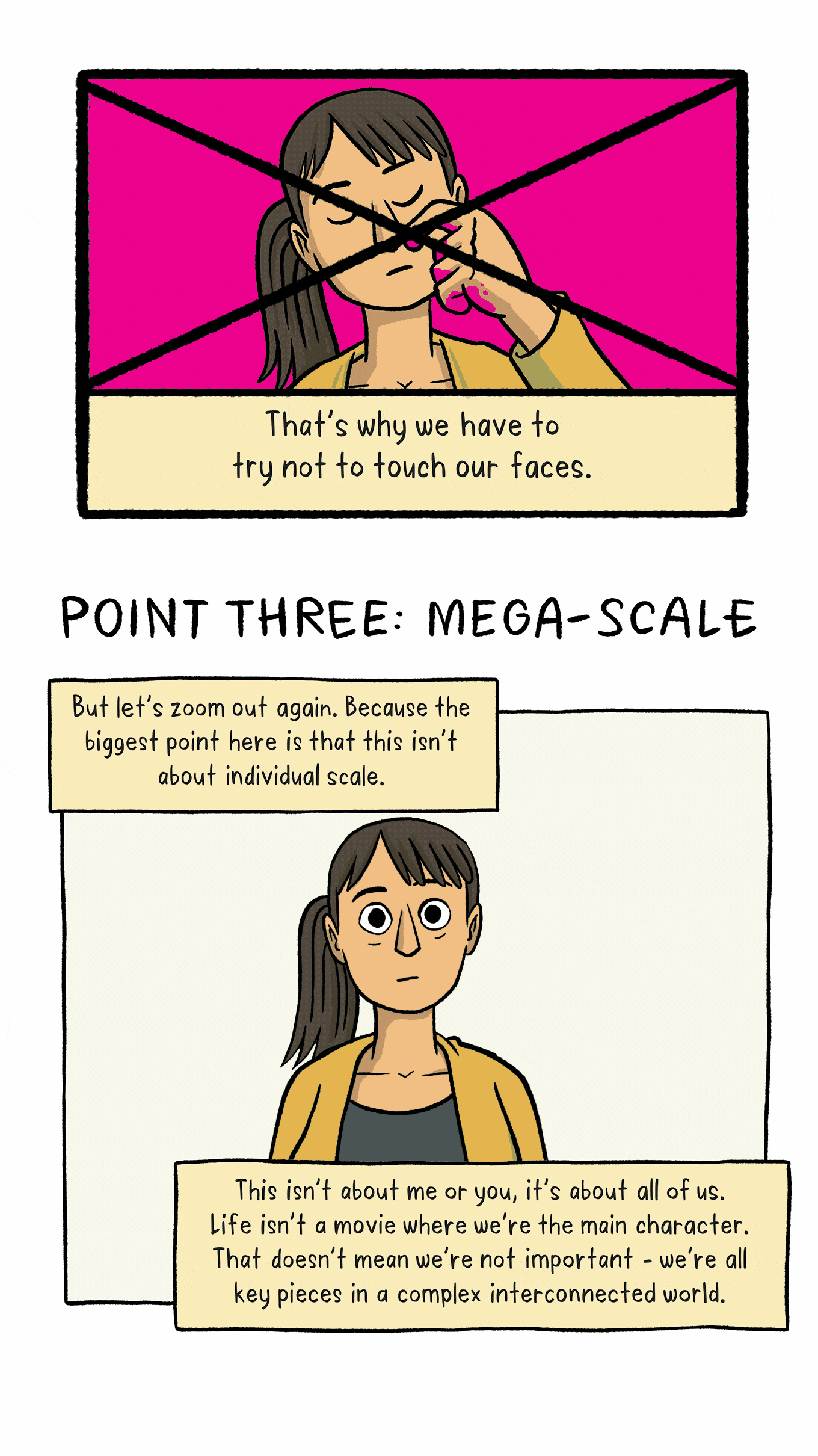 Spinoff cartoonist Toby Morris, with help from Dr Siouxsie Wiles, explores three important points about Covid-19