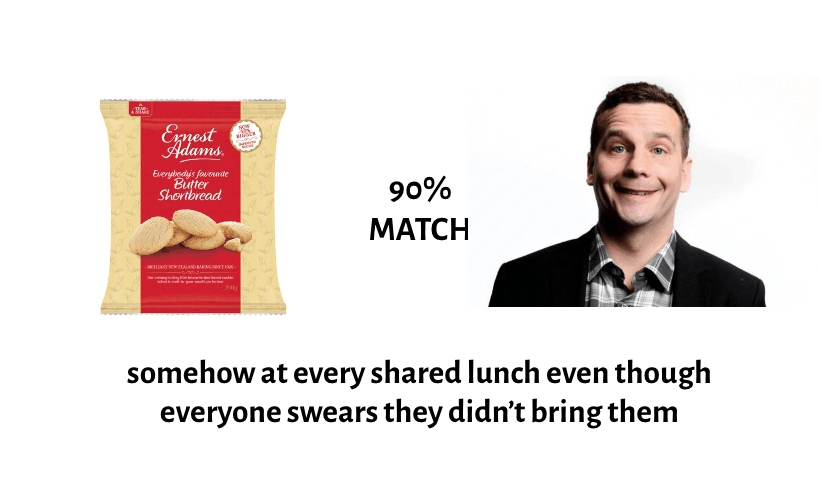 Putting them all in that group at the start. It’s like every Countdown brand biscuit is actually made from exactly the same stuff and just painted to look like different flavours. What a waste! Just pool your money and make one good biscuit! Ideas like this are why I will never be rich.