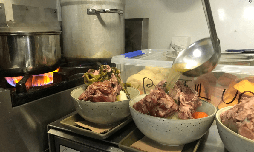 The collaboration, which takes place every Wednesday, feeds eager customers the iconic Māori dish. From early in the morning you’ll find Goffe alongside a team of organisers cooking up a hearty combination of mānuka-cured bacon bones, carrots, pumpkin, rīwai, kūmara, pūhā, pearled with delicious chewy dough boys. It’s $10 for the boil-up, or $15 to add fry bread or rēwena and a drink, and you can order through Facebook or Instagram.