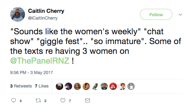 Megan Whelan found the same effect recently when she filled in for a few days for fellow broadcaster Jim Mora on RNZ’s drive-time show, The Panel. Each day the show brings on two commentators to discuss the day’s news, and one day Whelan hosted the show with two female commentators.