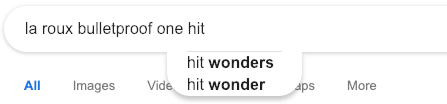To be completely honest, I didn’t know if La Roux was a one hit wonder, or if I was just unaware of any other singles breaking through. I liked the album enough, but there wasn’t another song as good as ‘Bulletproof’ on it and none of the duo’s singles broke the charts here. Plus, look at this Google search predictive text: