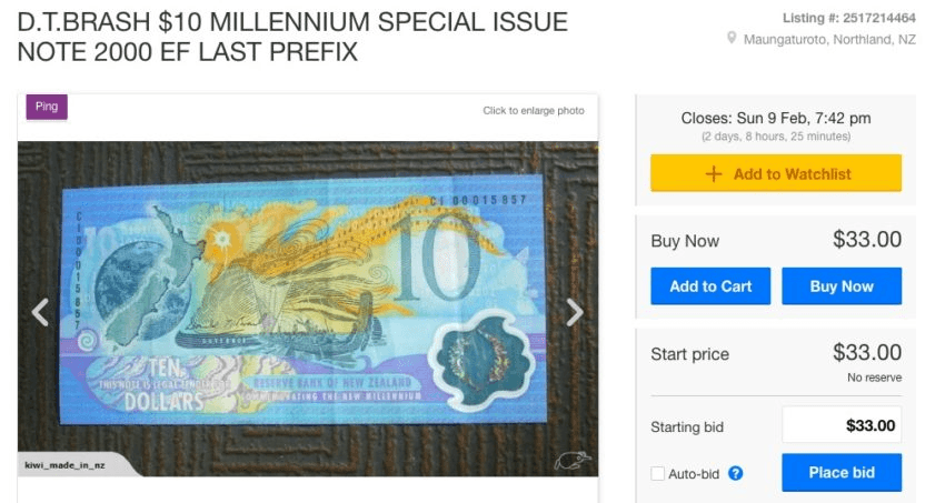 So what should you do if you find one? And how long should you hold onto it “If you happen to come across a $10 millennium banknote you could be holding on to a lot more than $10,” Stewart says. “If you want to cash in, there are plenty of keen Kiwis looking for these collectible notes onsite.” It proves to be becoming a more populated market too, with the sale of collectable banknotes on Trade Me in 2019 increasing from the previous year by 68%. Overseas sites feature the note for as much as $60 US.