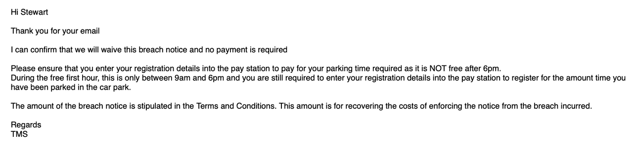 So, there’s the public service announcement: you might not need to pay that parking fine. If you think you’ve been hard done by, try and fight it first. Email the company that’s threatened you and if that doesn’t work you can always escalate things higher up.