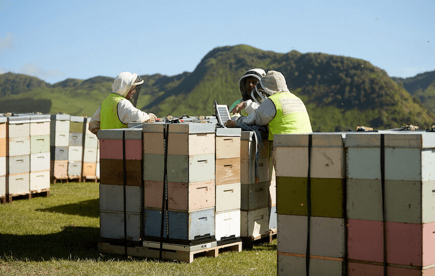 Mānuka honey hives usually have to be placed in very remote locations which means often the only way to get them there is to drop them off by helicopter. Because they’re so difficult and expensive to access, the only option for beekeepers is to then come back a few months later hoping for the best. To address this, Trevarthen and his team developed connected scales that are placed under the hives to measure how much honey has been produced (or, in some cases, whether the hive needs to be topped up with food to stop the bees from starving) and transmit that information via the cellular network or by satellite.