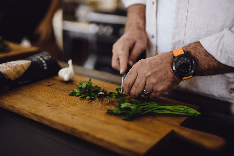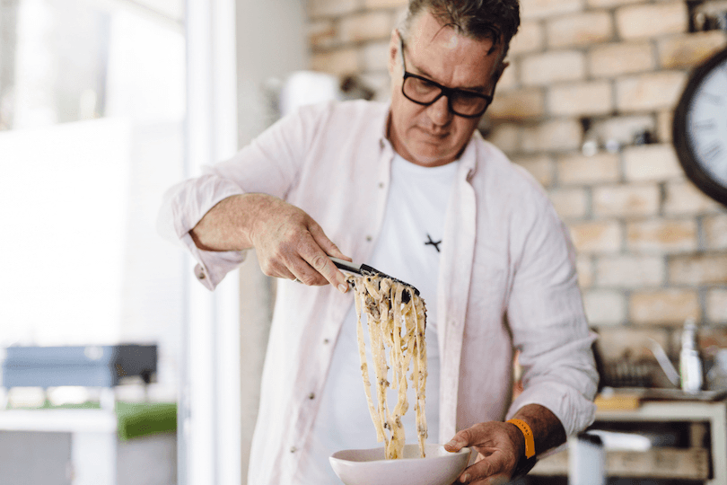Cooking is a part of his wellness programme. When he cooks, all he thinks about is cooking. For that moment his world is just parsley and garlic. When he shares food it’s all about the meal and the people and that moment. It works.