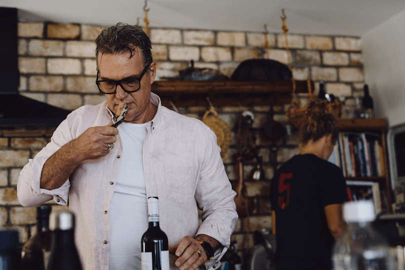 Kirwan goes back to chopping the parsley and garlic, before running olive oil through it to create a fragrant bright green dressing for lunch. He’s a good cook, but also a committed student, aware of his deficiencies and eager to keep learning. He loves food. Last week he made a pheasant ragù, cut with chicken to reduce the gamey flavours for his family’s more delicate palates. He’s got a sausage-making machine downstairs that he hasn’t used yet, but his youngest son Luca (19) misses Italian sausages so he’s promised to make some. His kitchen is rustic, and very Mediterranean, with pots and pans hanging in front of an exposed brick wall. There are herbs and bottles of wine and olive oil scattered throughout the room.