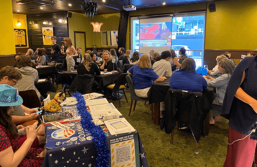 4.05pm: The view from Wellington’s Democrats Abroad watch party