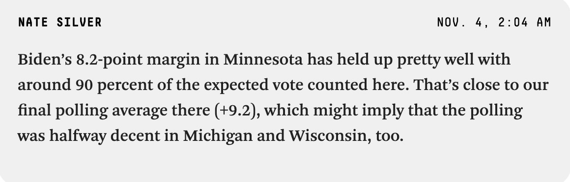 — FiveThirtyEight (@FiveThirtyEight) November 4, 2020