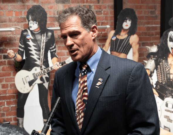 The US ambassador to New Zealand, Scott Brown, is watching the results roll in with friends “at a watch event” in Wellington. Here’s a picture the former Massachusetts senator and Cosmo pin-up just posted on Twitter in which he is, naturally, flanked by giant cut-outs of members of Kiss.