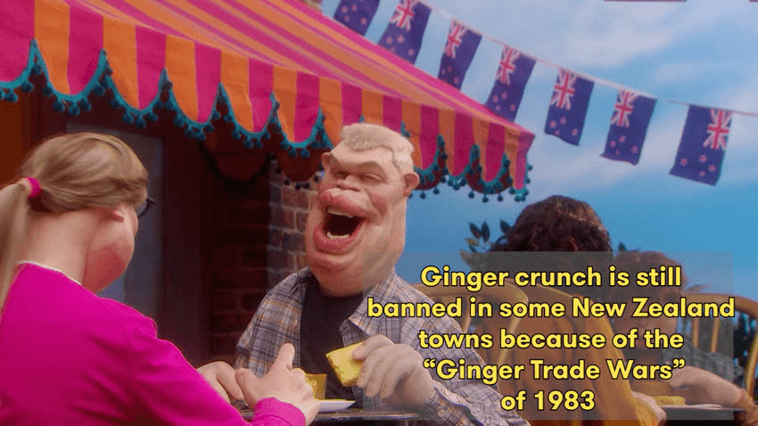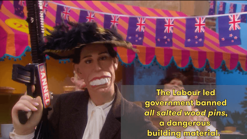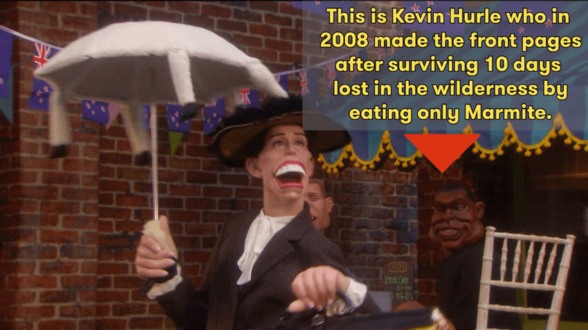 If you’re an international reader of our site and are curious about New Zealand and want to know more I’ve annotated the Spitting Image sketch with all the New Zealand references and Easter eggs I could find. After watching this video you’ll be armed with an arsenal of fascinating Kiwi facts ready to share with friends and family alike. I’ve also screenshotted the key information below.