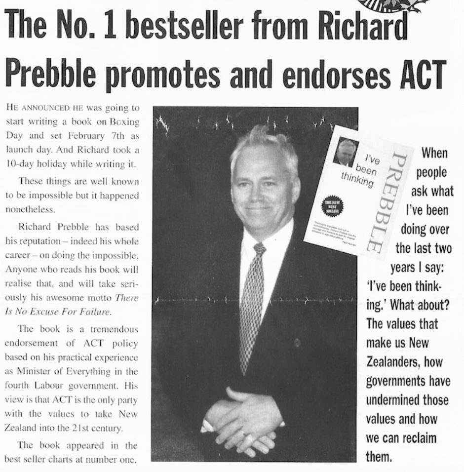 In May I was elected leader of the Act party. I said, “Why don’t we print 200,000 copies of I’ve Been Thinking and give them away?” That is what we did. As a political pamphlet it was very successful. Before we mass distributed I’ve Been Thinking, ACT was at less than 1% in the polls. In the election the party won seven seats.