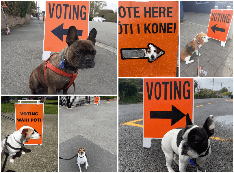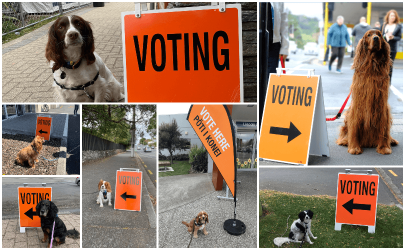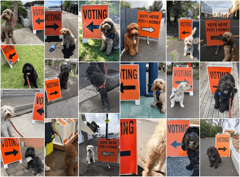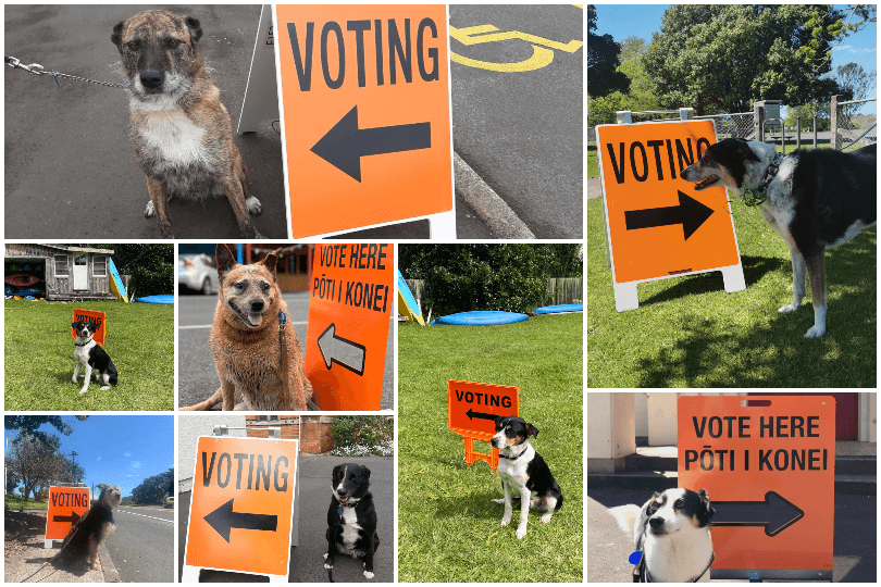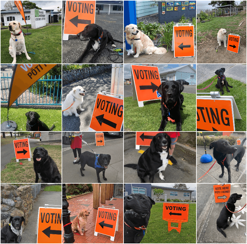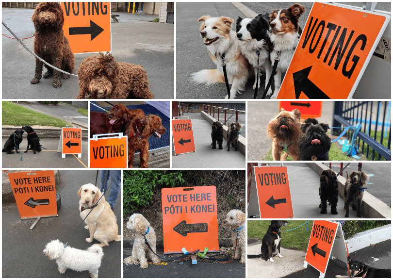Last week, we asked you to send in your photos of dogs at polling booths, promising our election day live updates would be nothing but democratic doggos until 7pm. We seriously underestimated how many of you would get on board with this kaupapa and I, as sole charge editor of the site during the day on Saturday, was swamped. Seriously swamped.