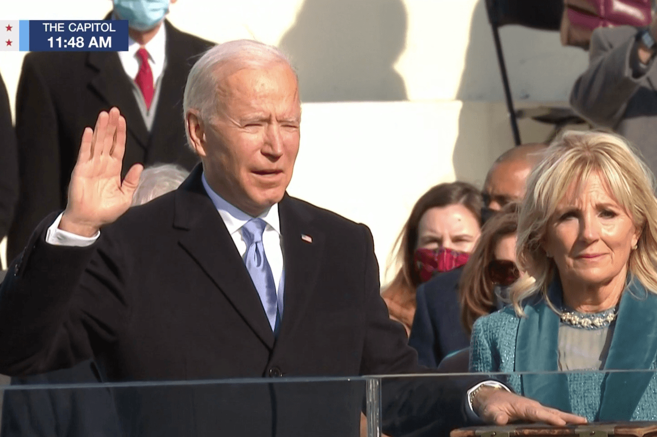 A few minutes earlier than expected, Joe Biden has been sworn in as 46th president of the United States. He swore the oath of office on his large family bible which has been in his family since 1893 and used by Biden each time he’s been sworn into elected office during the course of his career. He is now giving his inaugural address.