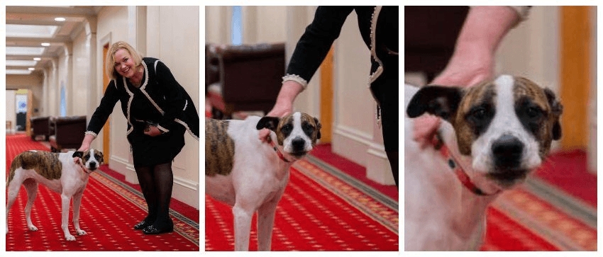There’s something so deeply funny about this sad-looking dog bumping into Judith Collins in the halls of parliament. She (the dog) looks guilty as hell, like a kid whose parent has made her get a photo with someone who might be famous. And to look straight down the lens for the photo? This dog is trying to tell us something but I don’t know what. Blink twice if you can hear me.