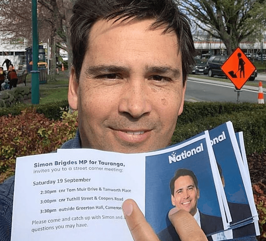 Simon Bridges is living a relaxed life. So relaxed that he failed to notice he’d misspelled his own name on his campaign flyers.