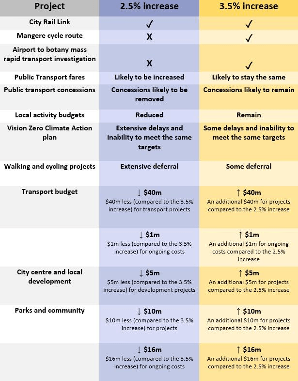The impacts of a lower rates rise are so extensive, partly because of the way local government’s finances are structured in New Zealand. Auckland Council’s debt is capped by legislation at 2.7 times its revenue, meaning every dollar of lost income results in a corresponding reduction in its borrowing power. Unless rates are put up later to make up for the lost revenue, that reduction compounds year upon year. In other words, 2.5% rise won’t only mean $17m in revenue and $45m in capital are gone this year; around $200 million in revenue and $450 million capital will be lost over the council’s entire 10 year budget.