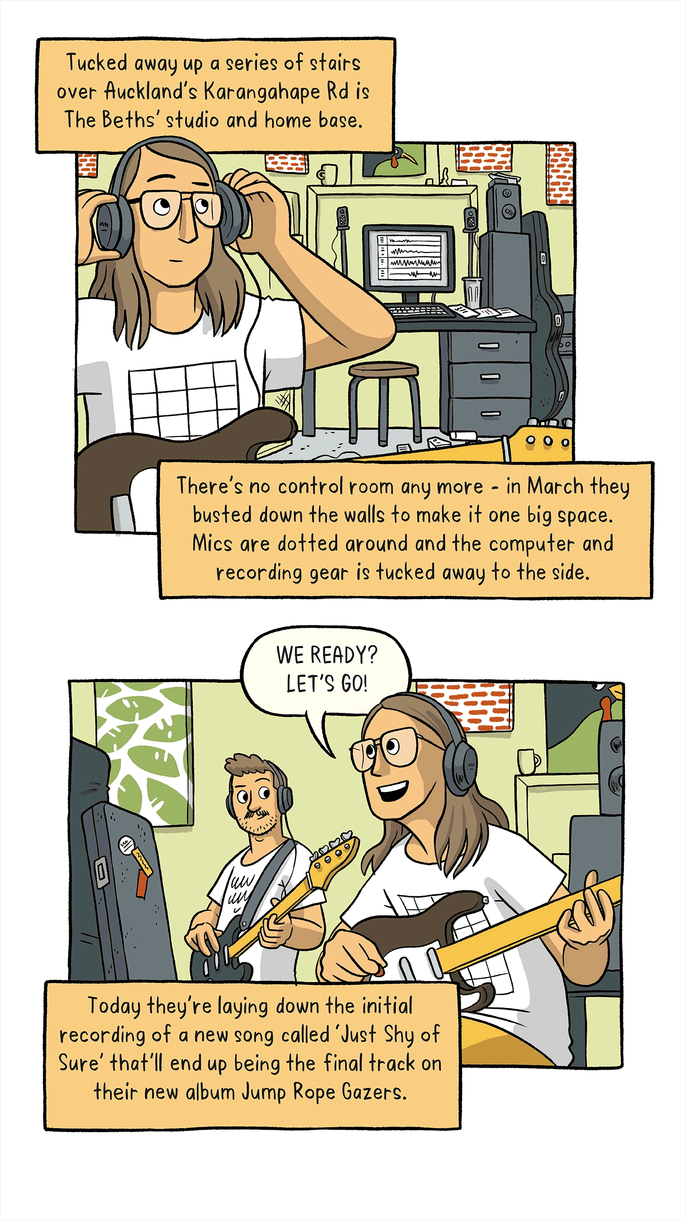 Summer reissue: Last December, Side Eye cartoonist Toby Morris joined The Beths in the studio while they recorded ‘Just Shy of Sure’ off their 2020 album Jump Rope Gazers.