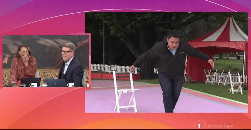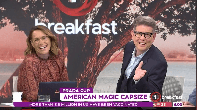The main story was the capsize of the American Magic yacht, and we saw shot after shot of a big hole in some expensive plastic. “Bad luck, poo poo,” Mark summarised, while the others mused over what might have made the hole, mostly likely one of the many hire bikes that Mark admitted to pushing into the sea. Breakfast’s intrepid reporter Isaac treated us to a live recreation of the incident. It was a cracking piece of impromptu breakfast television, and we can only hope that every one of Isaac’s live crosses during 2021 will now be communicated through the art of interpretive dance.