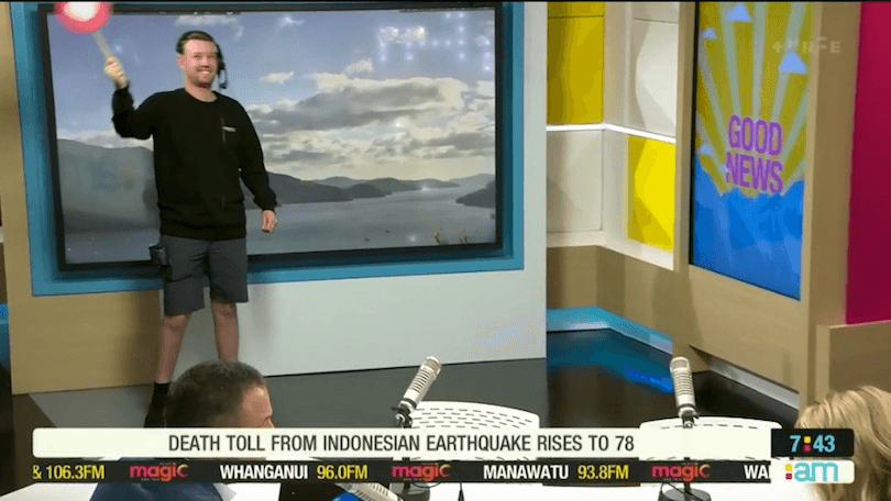 Although it was the first day back, Breakfast was determined to remind us there’s more to summer than a chocolate tan and a munted boat. While The AM Show debated whether social media companies need policing over account suspensions, Jenny-May interviewed tourism provider Johnny from the back of his ute on a beach somewhere near Kaikoura, an orange kombi van parked in the background. Johnny was about to go fishing, and he’ll cook whatever he catches in garlic butter, John, thanks for asking. “You can smell the dope wafting out of that kombi van,” John said. It’s 8.23am, it’s fine. I love the news.