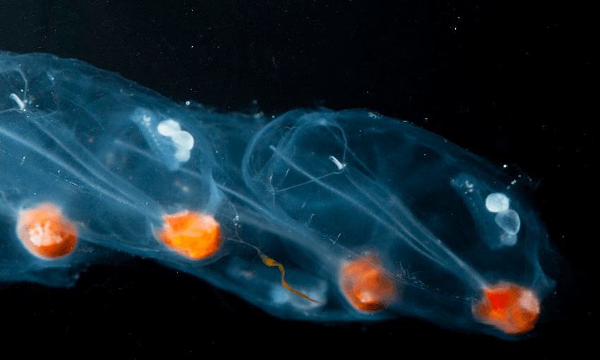 Their poop feeds the deep ocean! And many fishes that we love to eat in New Zealand – blue warehou, silver warehou – love to eat salps! They play a key role in the New Zealand marine ecosystem because they are reliably present.