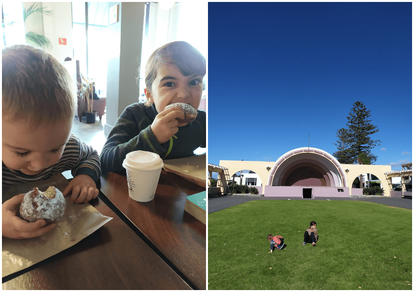 In level three, our bubble drove in to Napier and we walked along Marine Parade. My kids ran around the empty blue Tom Parker fountain, and we took pictures with the Pania statue. A lady on a mobility scooter stopped beside us (well, two metres from us) while we were there that day, and she told us that she had been to school with the girl who had modelled for Pania, and that she was a lovely person. Well, of course she was. The sun shone and our pre-ordered coffee was hot.
