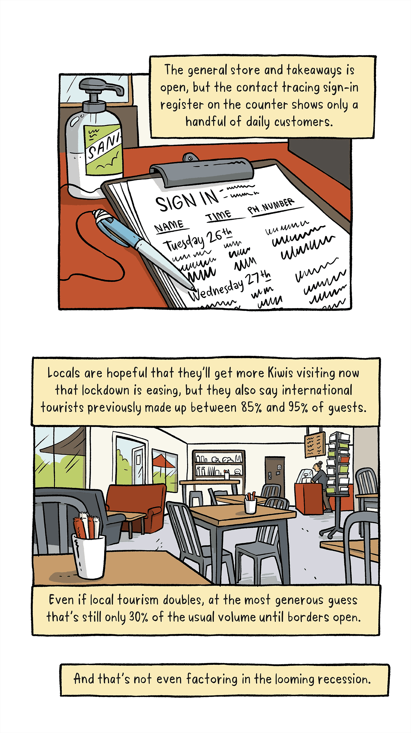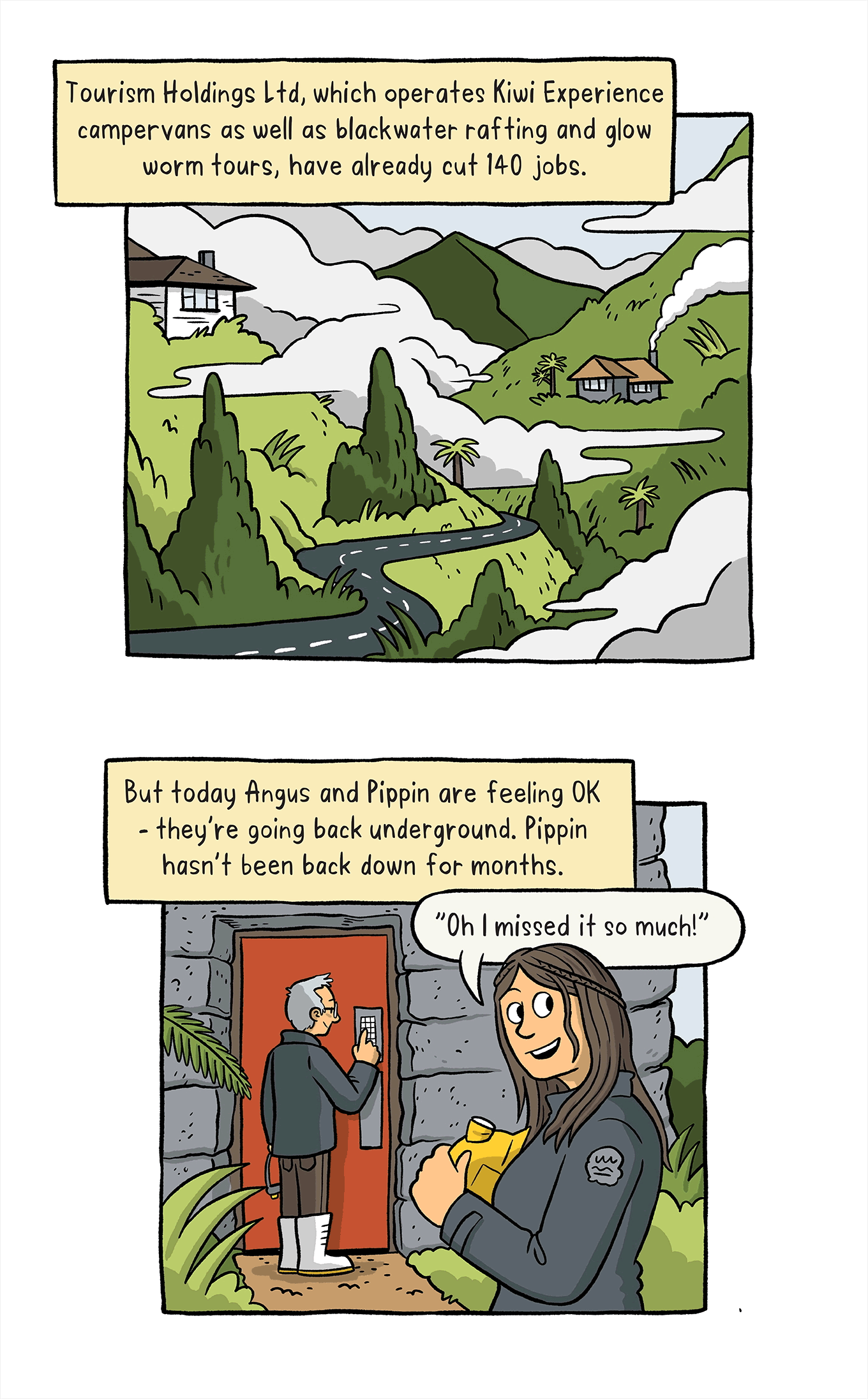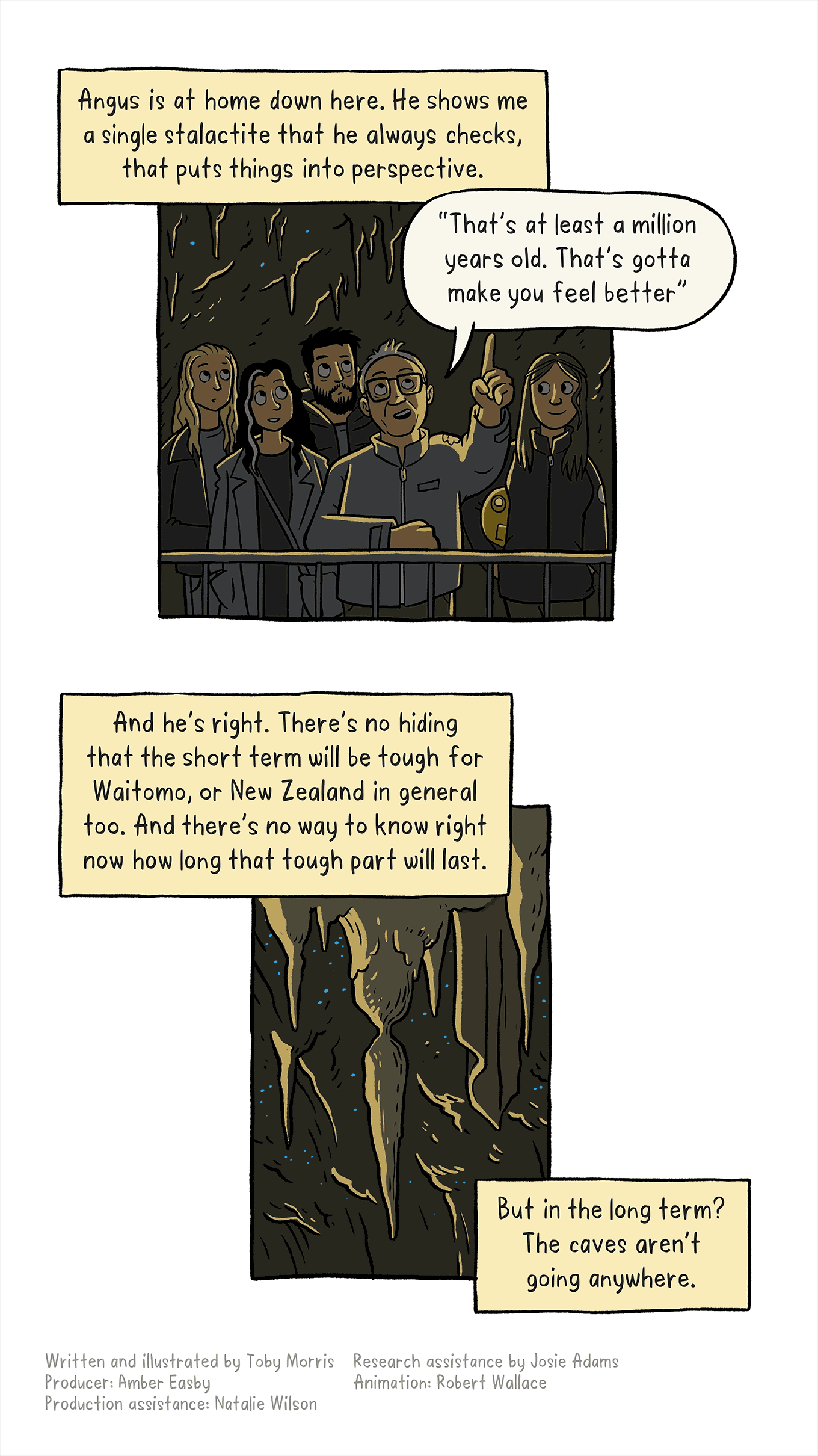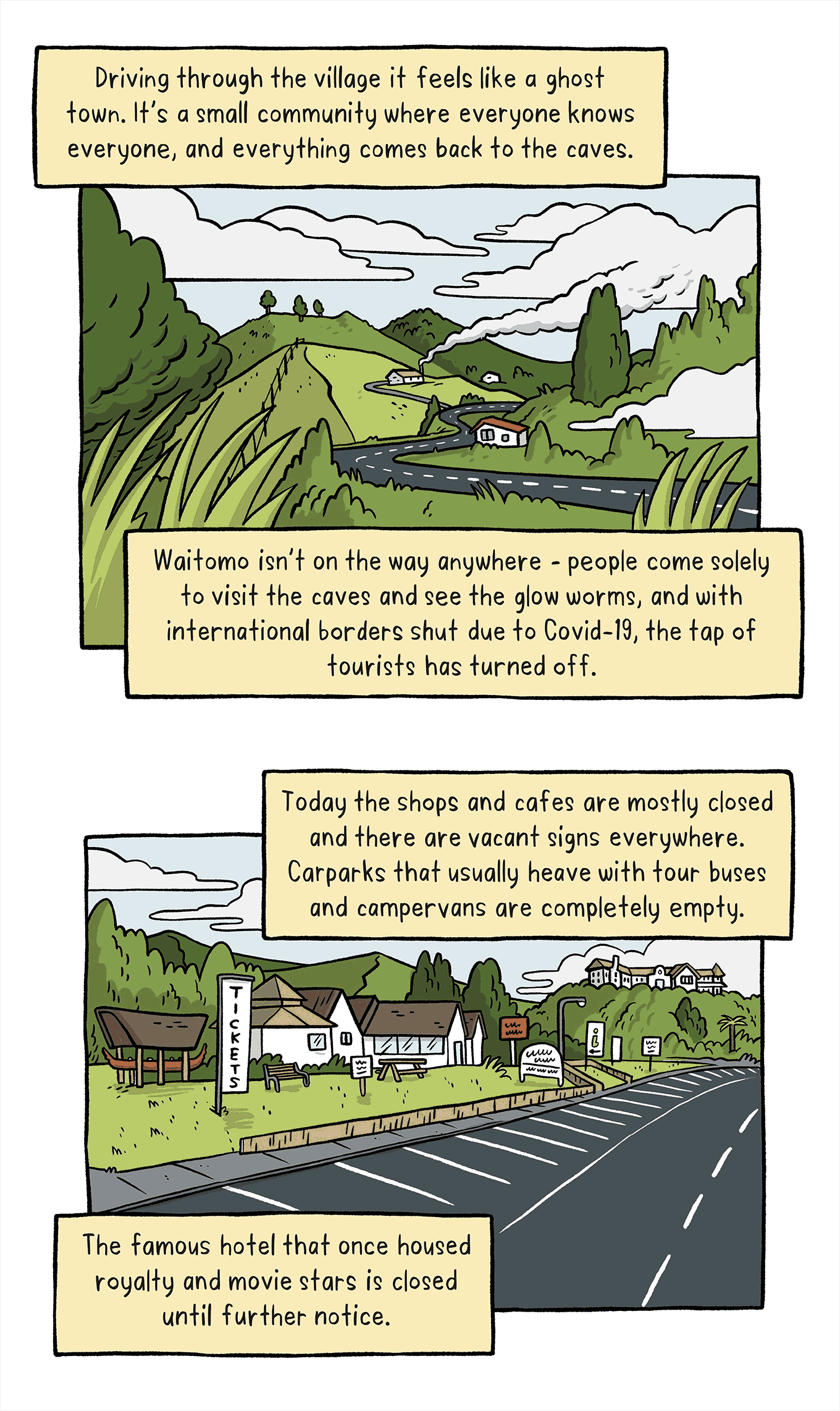 Summer reissue: Spinoff cartoonist Toby Morris travels to Waitomo to see first hand the impact of Covid-19 on one of New Zealand’s oldest tourist destinations.