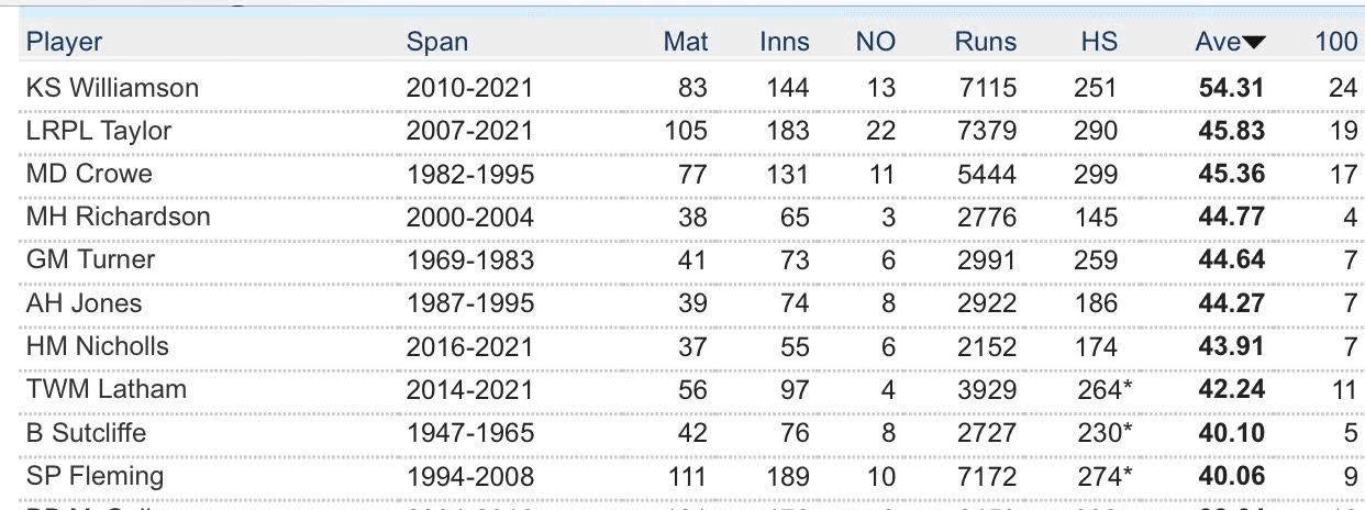 - Only 10 batsmen have averaged 40 or more. Four of them – Latham, Taylor, Williamson and Nicholls – are in our current side.